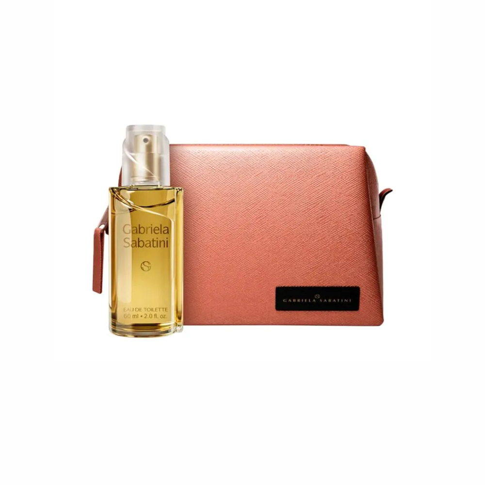 Conjunto feminino com perfume Gabriela Sabatini floral ambarada, com nécessaire. Uma fragrância para as mulheres confiantes.